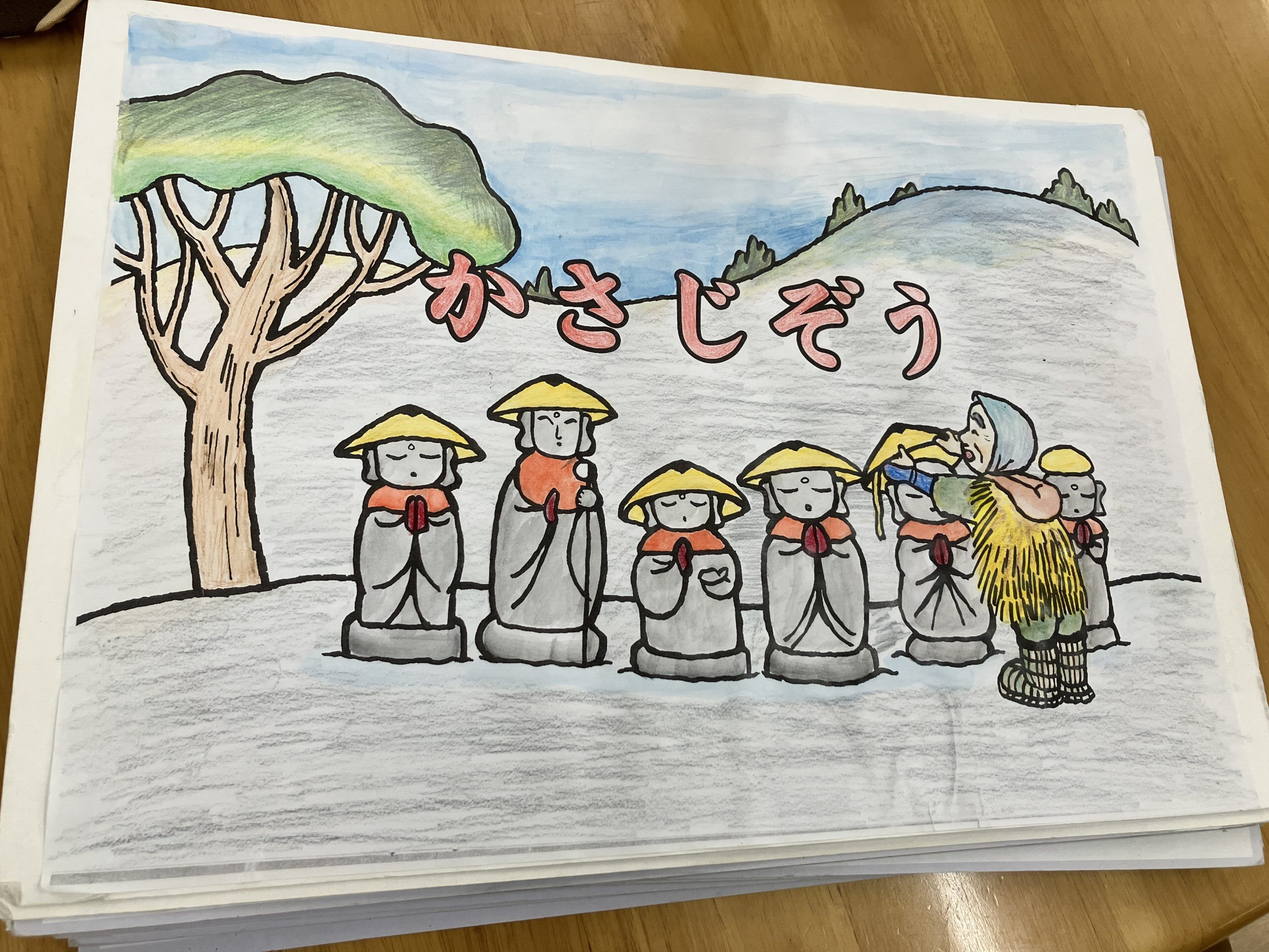 ご利用者が1年近くかけて色塗りを行い完成した2つの紙芝居。