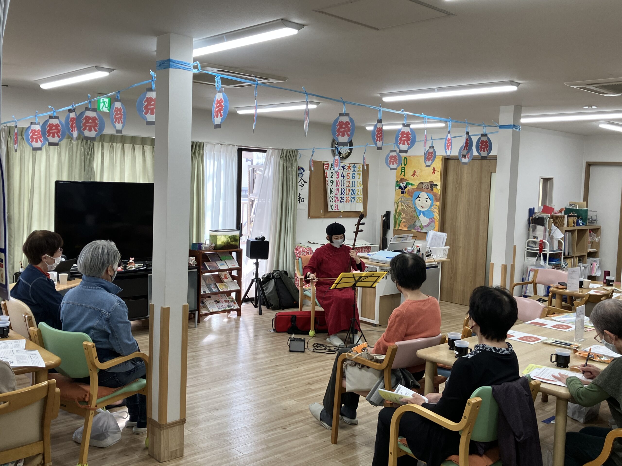 当日は北宇治地域包括センターの方々の進行の元、認知症についてのお話や福祉用具の説明、二胡の演奏会などが行われ、