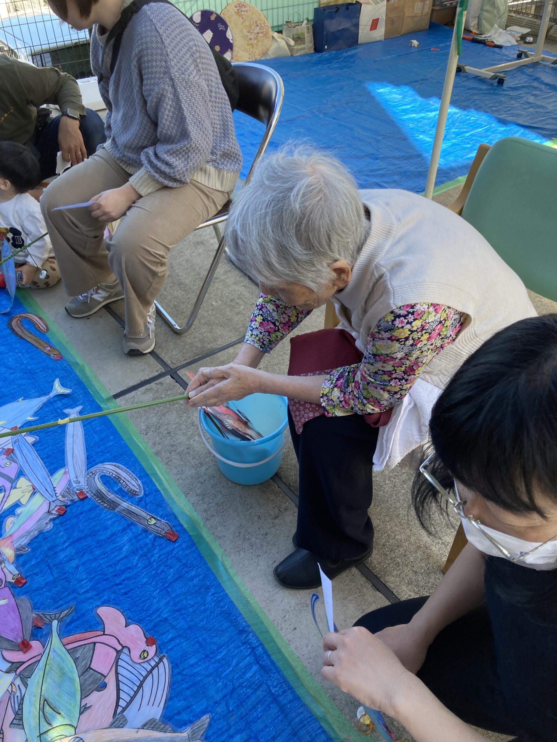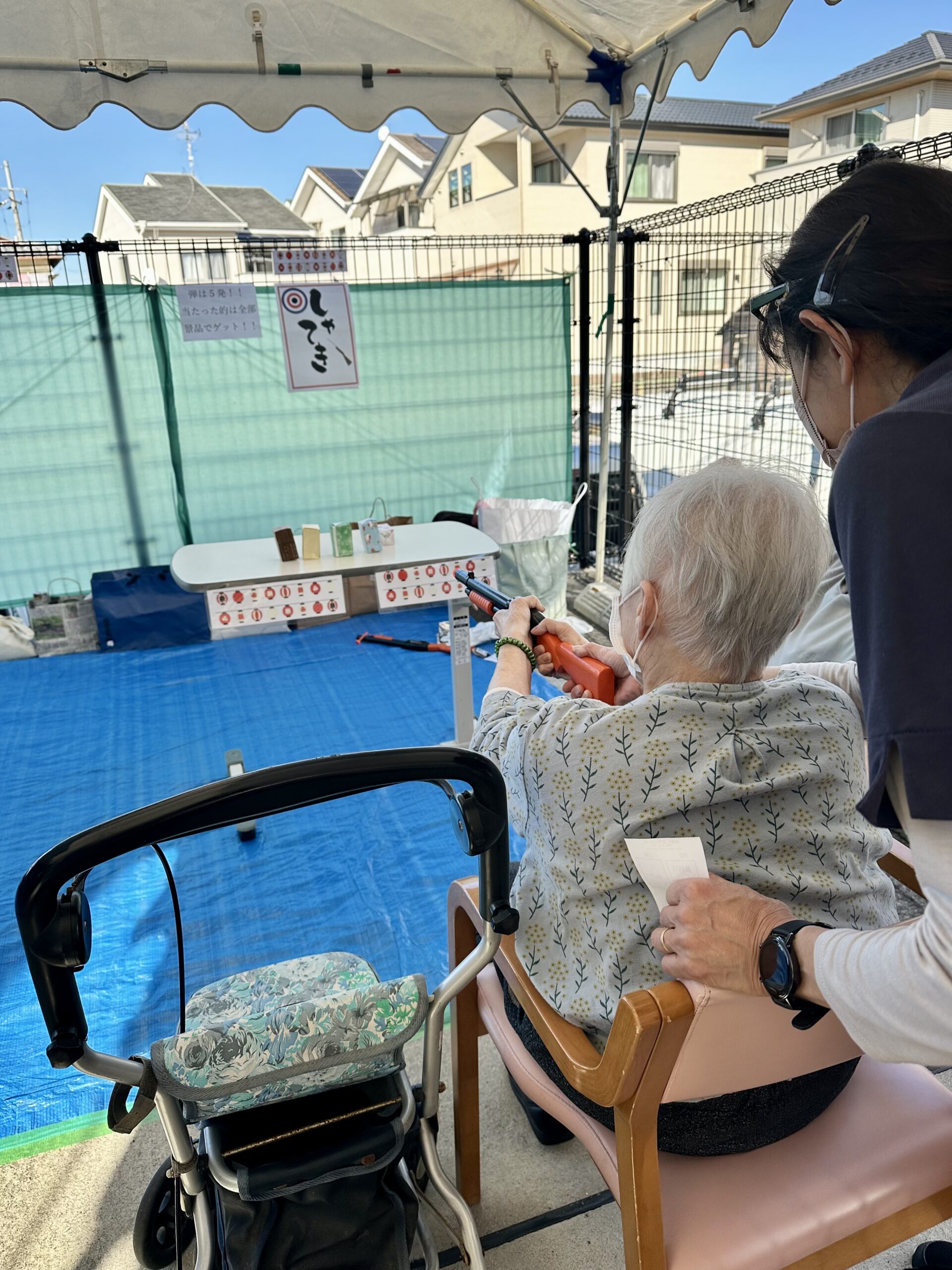 ②合同の秋祭りを開催し、全員参加。射的や魚釣り、オカリナ演奏を楽しまれました。
